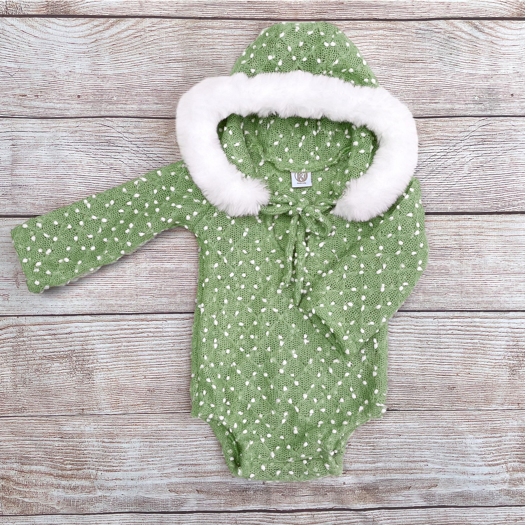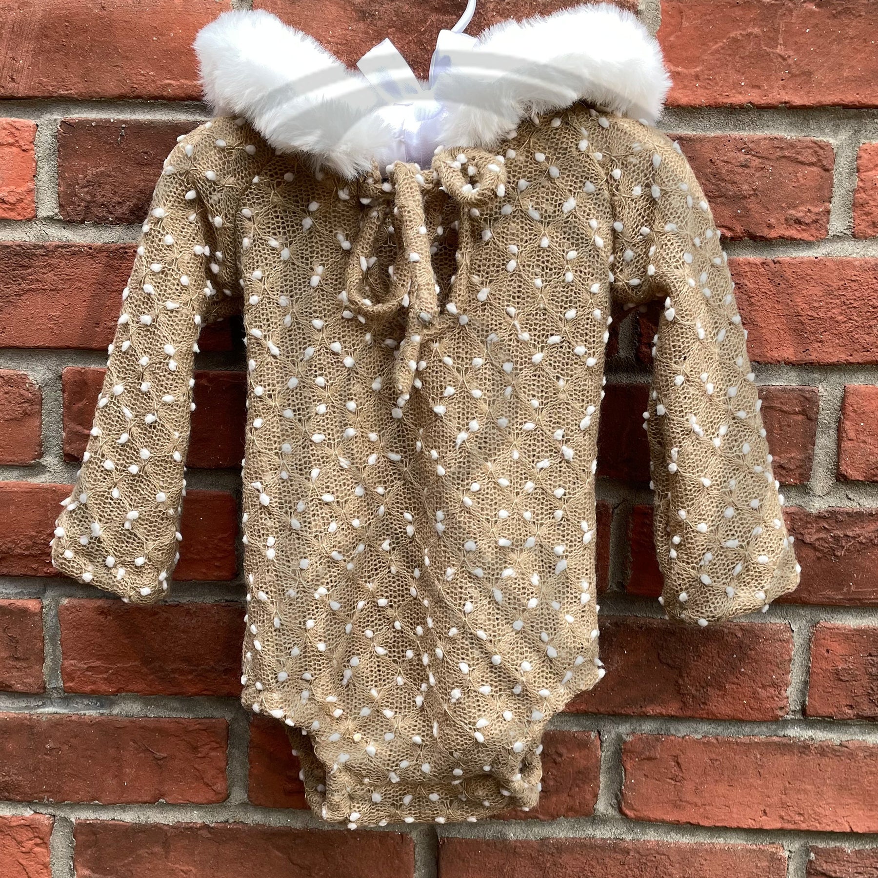 Product name: Photo Shoot Props Stretch Bobble Newborn Baby Romper with White Fur Cap for Newborn Infant Photography Accessories