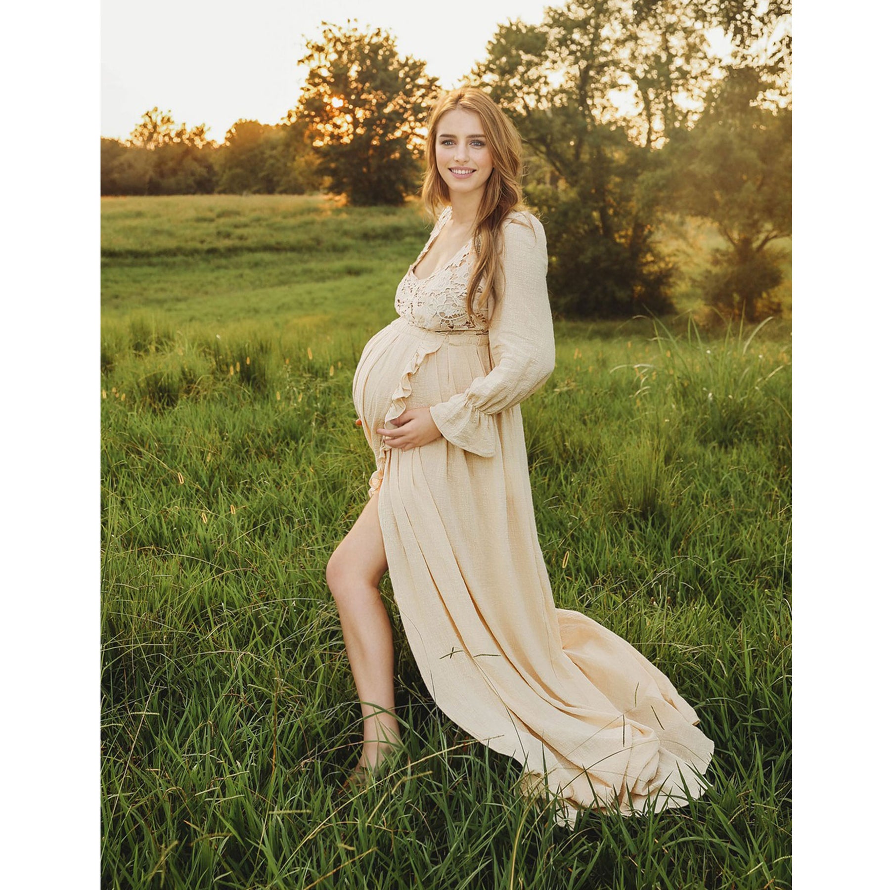 Product name: Floral Boho Vintage Embroidery Cotton Free Size Long Sleeves Maternity Gown Photography Dress Evening Party Costume Baby Shower Robe Maternity Couture for Photo Shoot