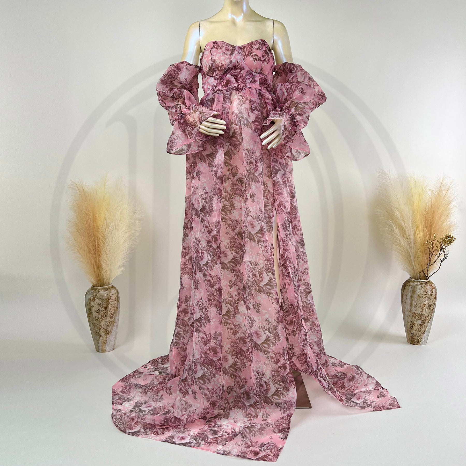 Product name:  Organza Puff Sleeve Side Slit Dress Maternity Gown Evening Party Dresses Pregnant for Women Photography Props Baby Shower Gift