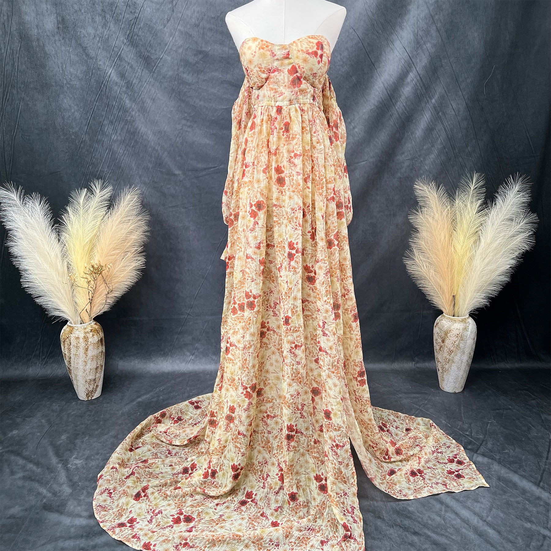 Product name:  Sexy One Shoulder and Side Slit Floral Dress Maternity or Non-maternity Gown Evening Party Dresses Pregnant for Women Photography Props Baby Shower Gift