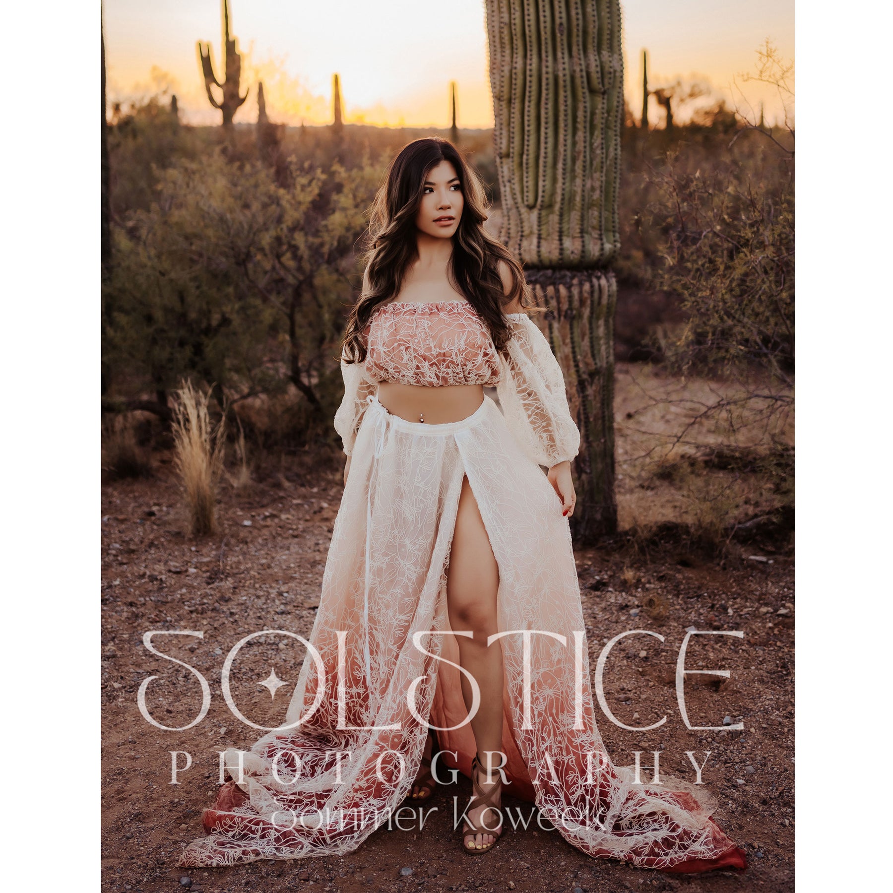 Product name: Boho 2-piece Set Fall Rust Gradient Maternity and Non-maternity Gown Photography Dress Evening Party Baby Shower for Photo Shoot