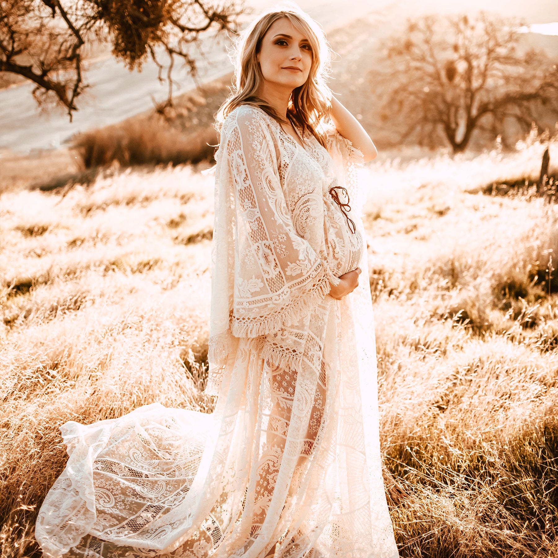 Product name: Boho V-neck Long Sleeve Lace Maternity Gown Photography Dress with Tassels Party Dresses Baby Shower Photo Props Kaftan Robe Maternity Couture for Photo Shoot