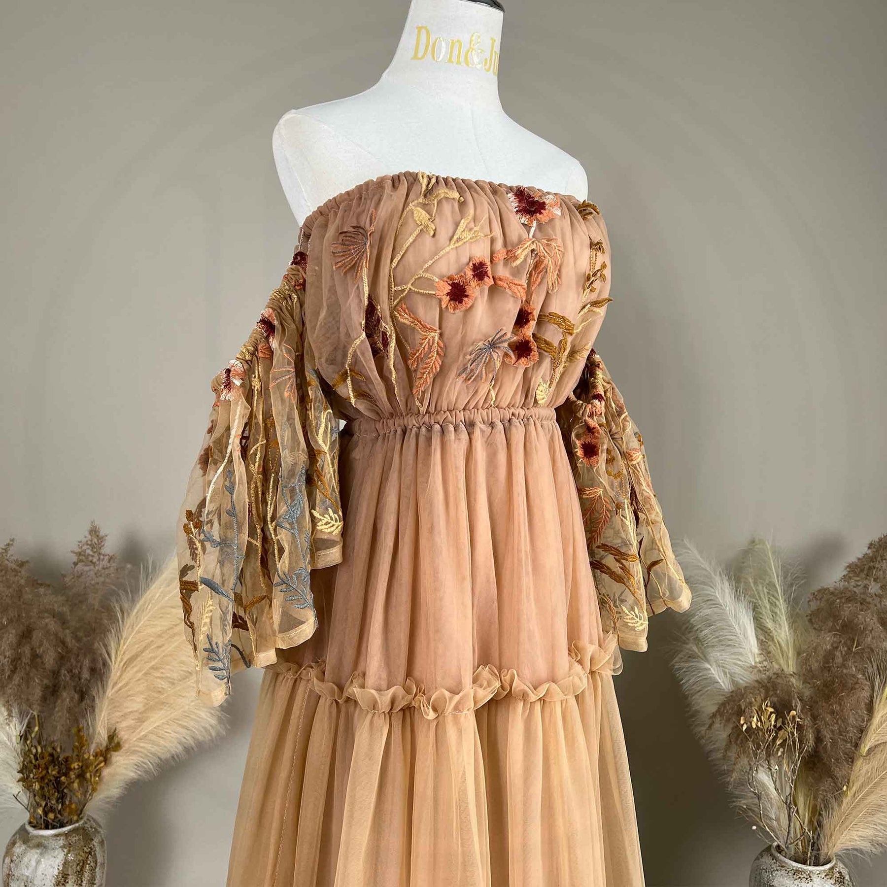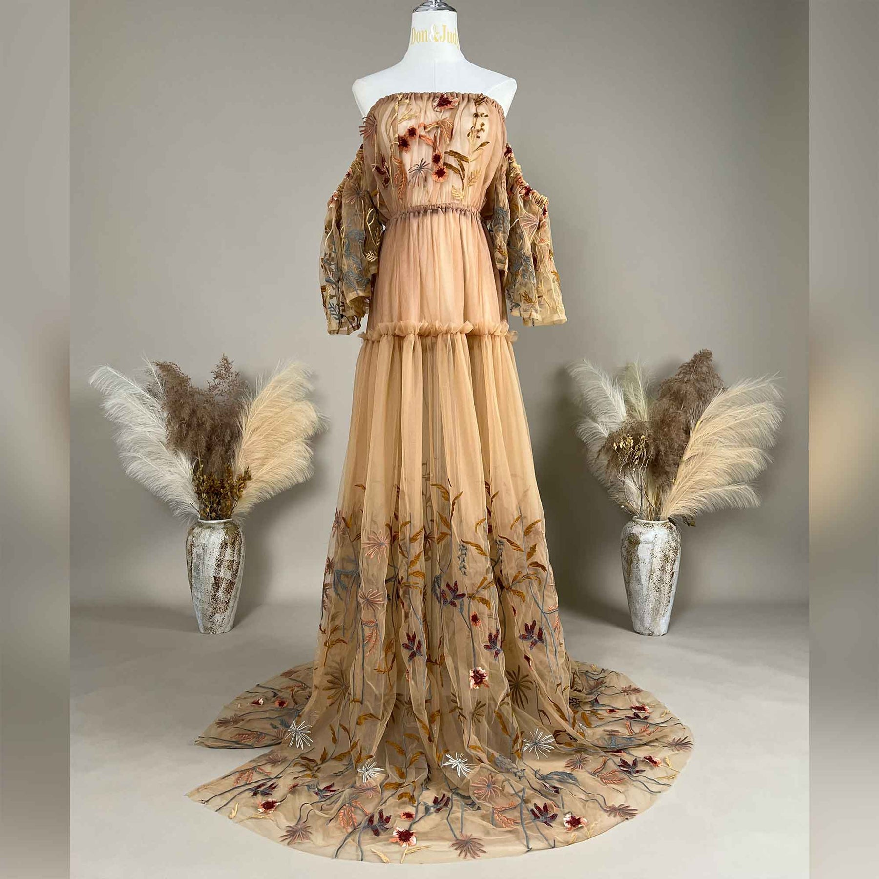 Product name: Boho Off-shoulder Autumn Embroidered Dress Maternity or Non-maternity Gown Party Dresses for Photography Props Baby Shower Photo Props