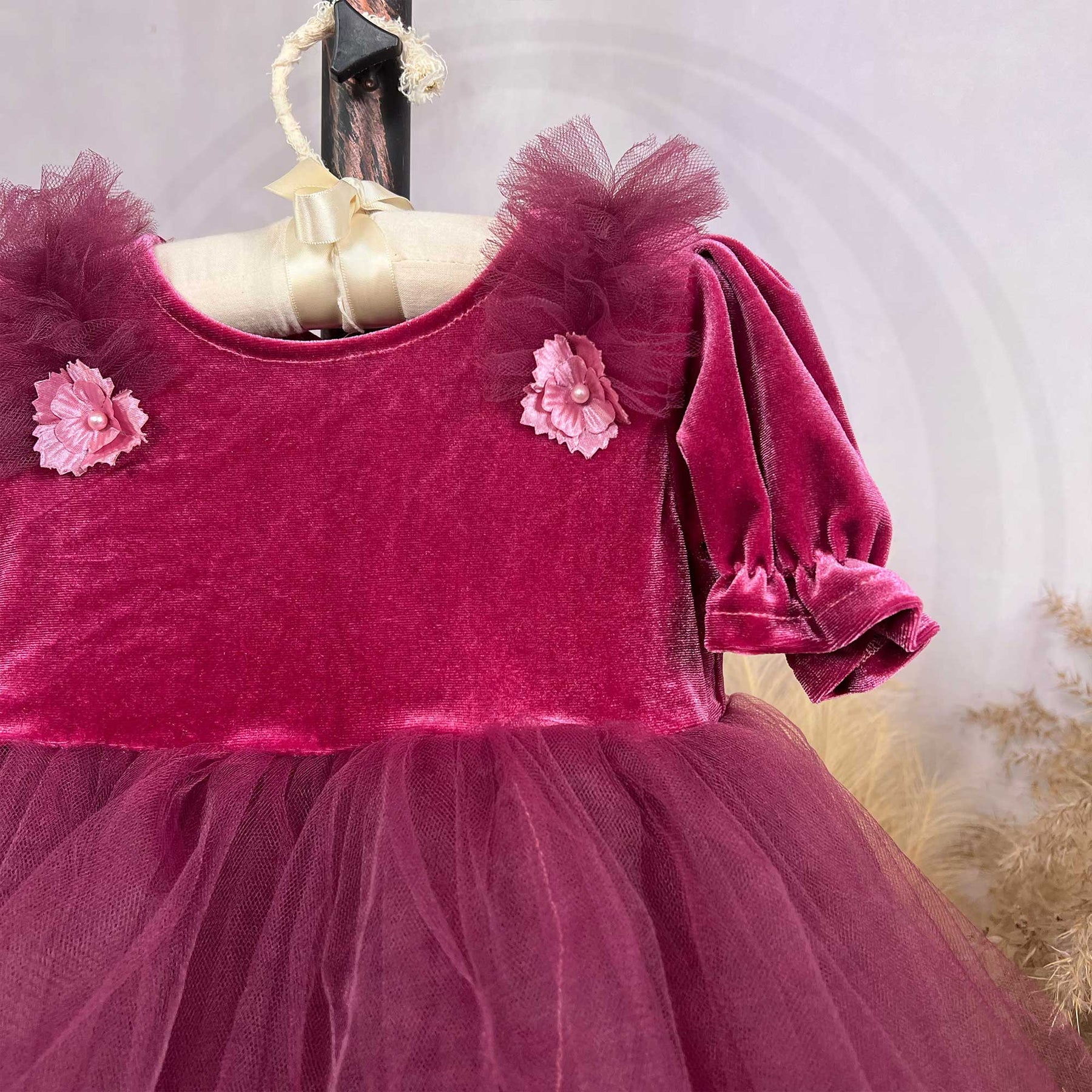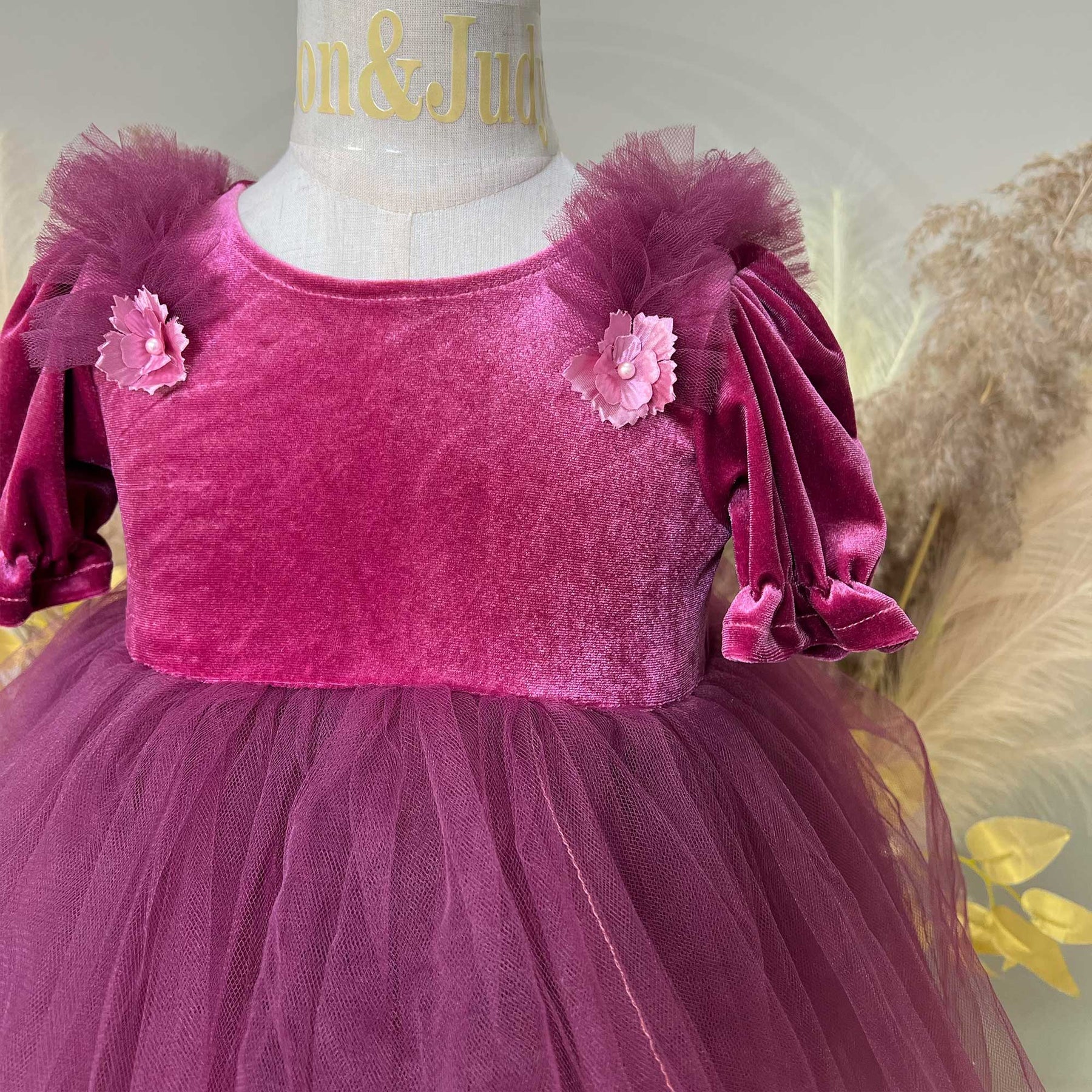 Product name: Velvet Puff Sleeves with Tulle Skirt 1-6years Little Girls Dress for Photo Shoot Props Photography Accessories