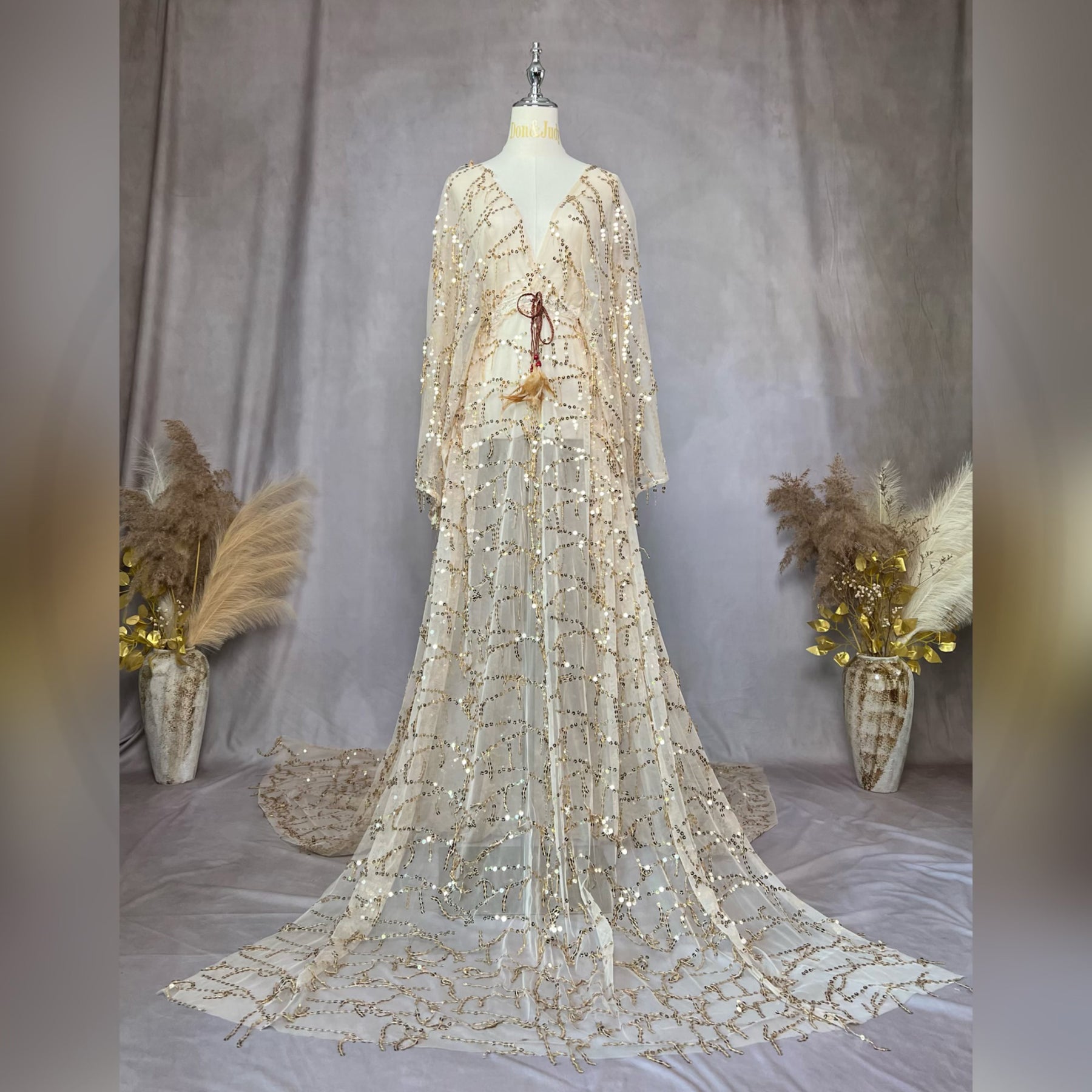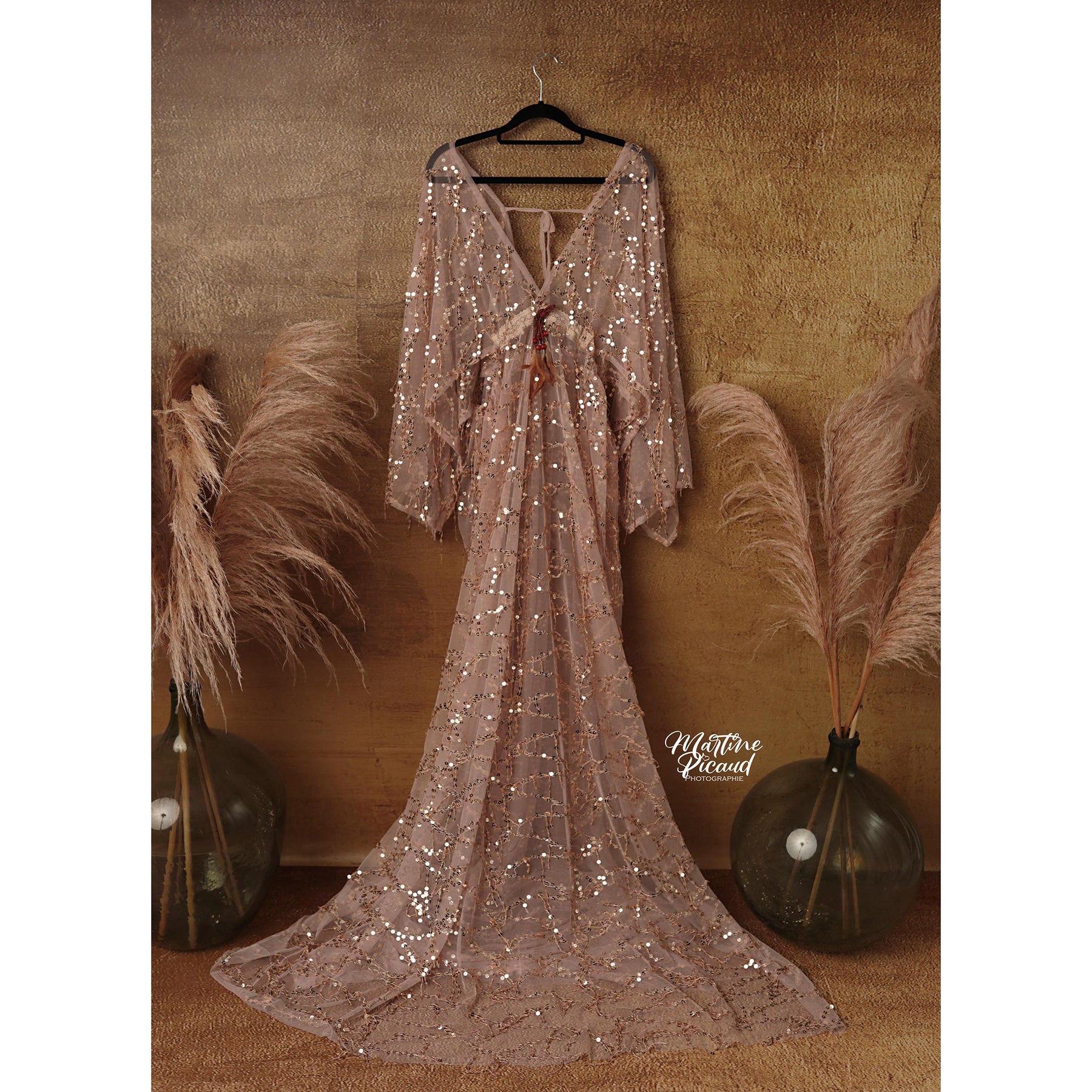 Product name: Gold Free Size Boho V-neck Long Sleeves Sequence Dress Frange Maternity Gown with Long Tassels Photography Dress Party Dresses Baby Shower Photo Props Kaftan Robe Maternity Couture Pregnancy Clothes for Woman Photo Shoot