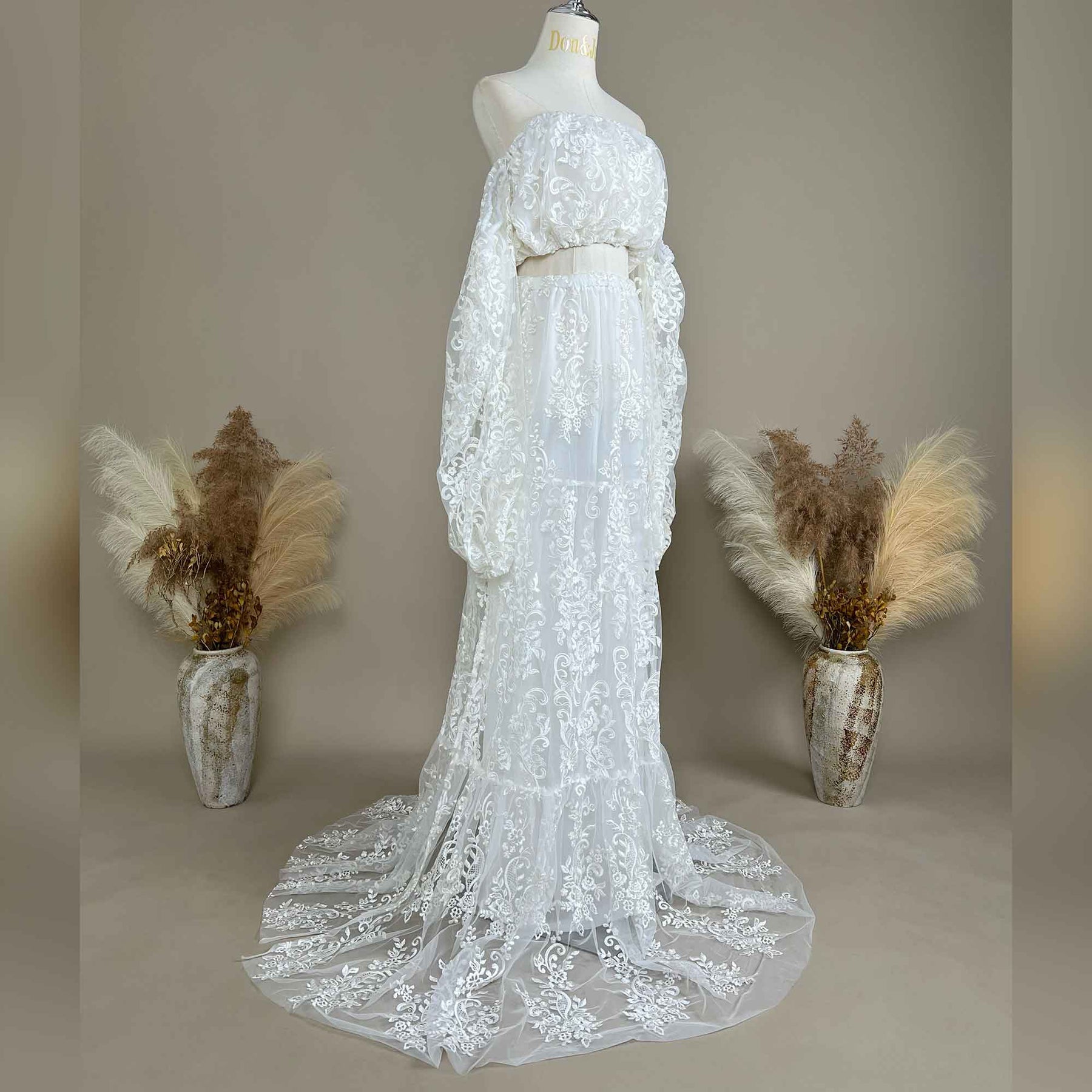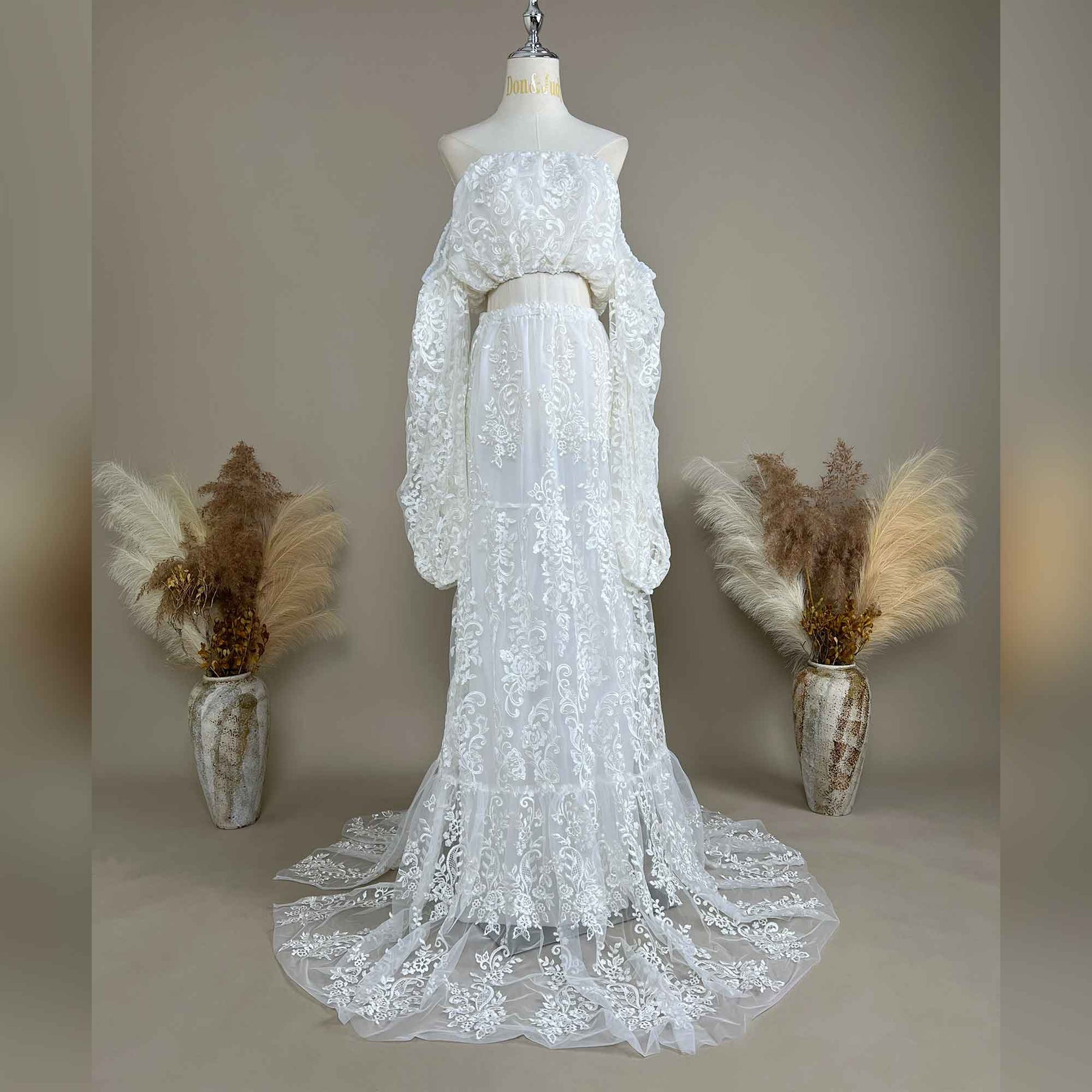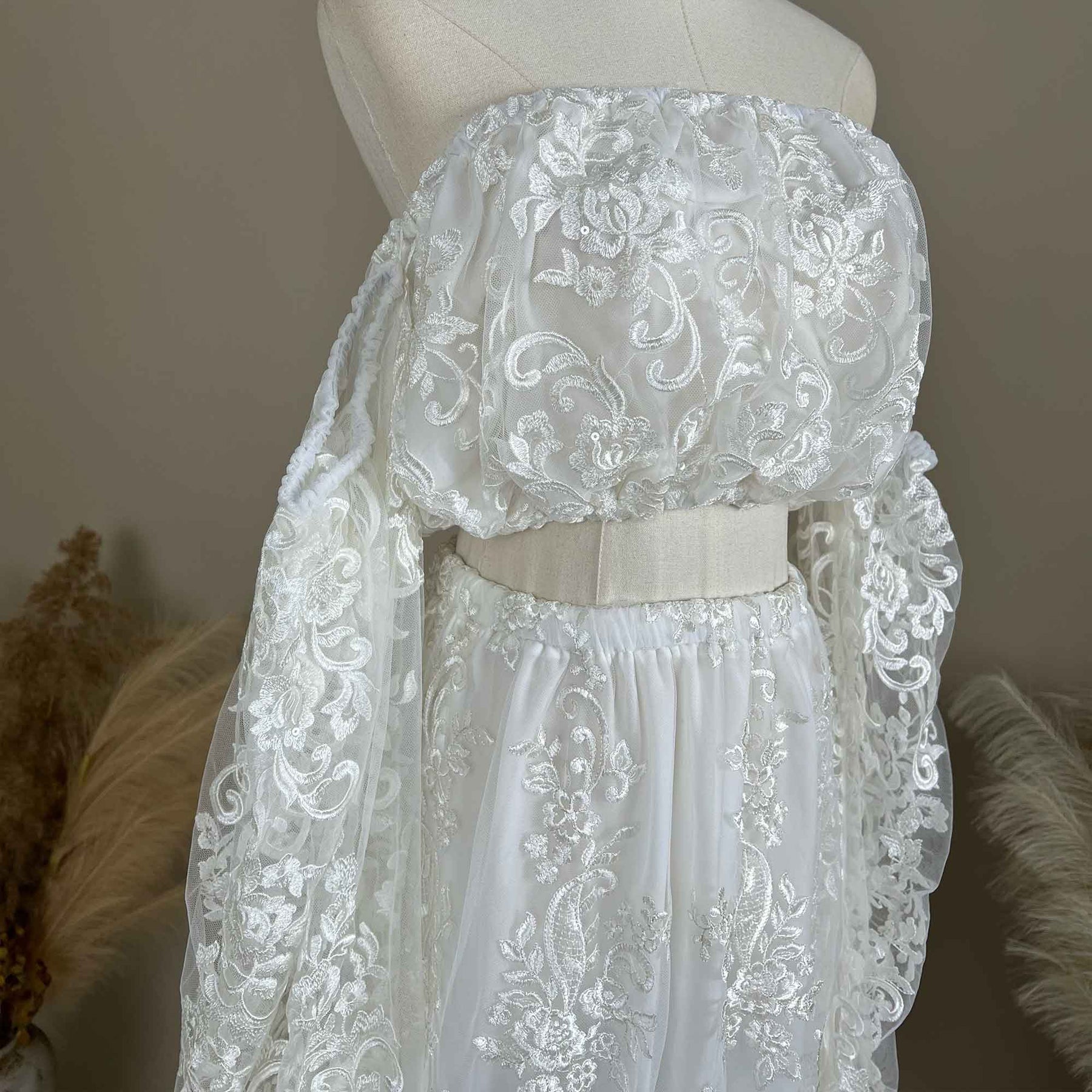 Product name: White Lace Two-piece Dress Set – Maternity or Non-maternity Gown Dresses for Photography Props & Baby Shower Photoshoot