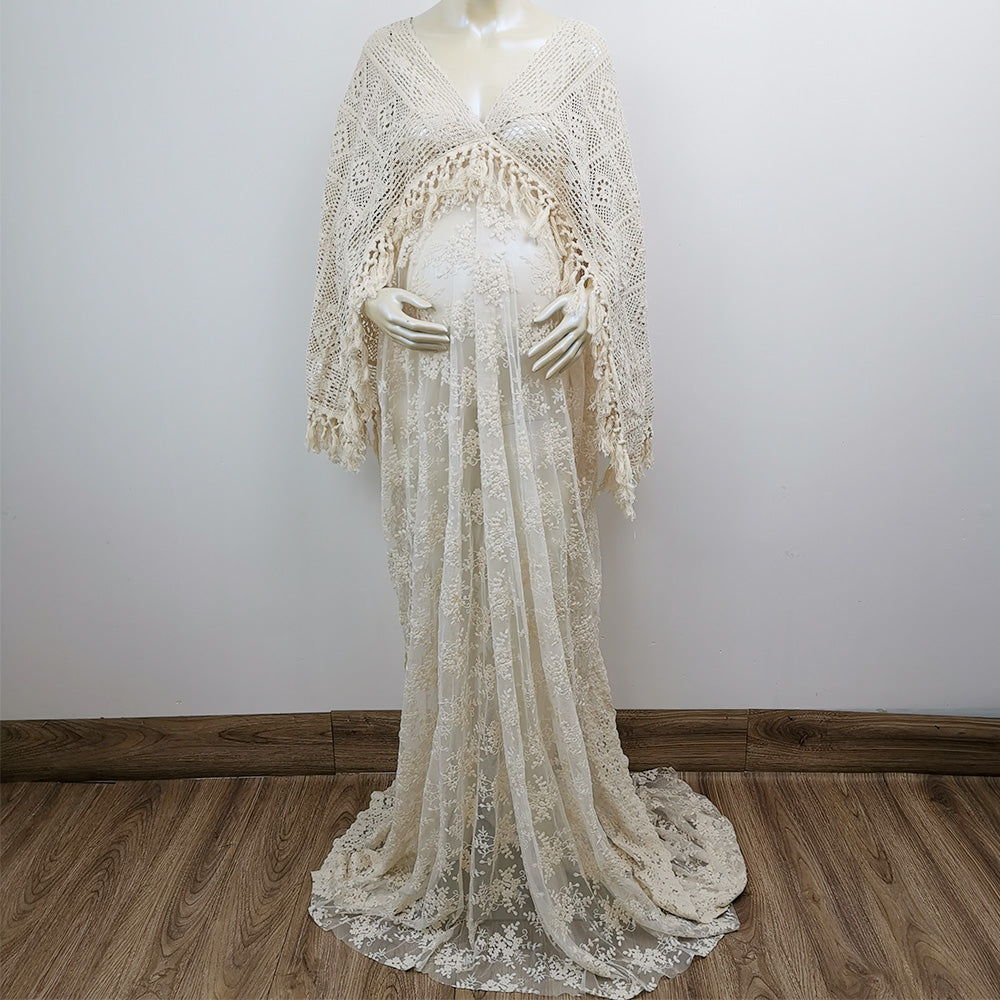 Product name:  Beige Vintage Cotton Mommy Gown with Matched Little Gilrs 3-6years Old Dress Set Boho Dress Pregnancy Photography Dresses Bohemia Maxi Gown Photo Shoot Prop
