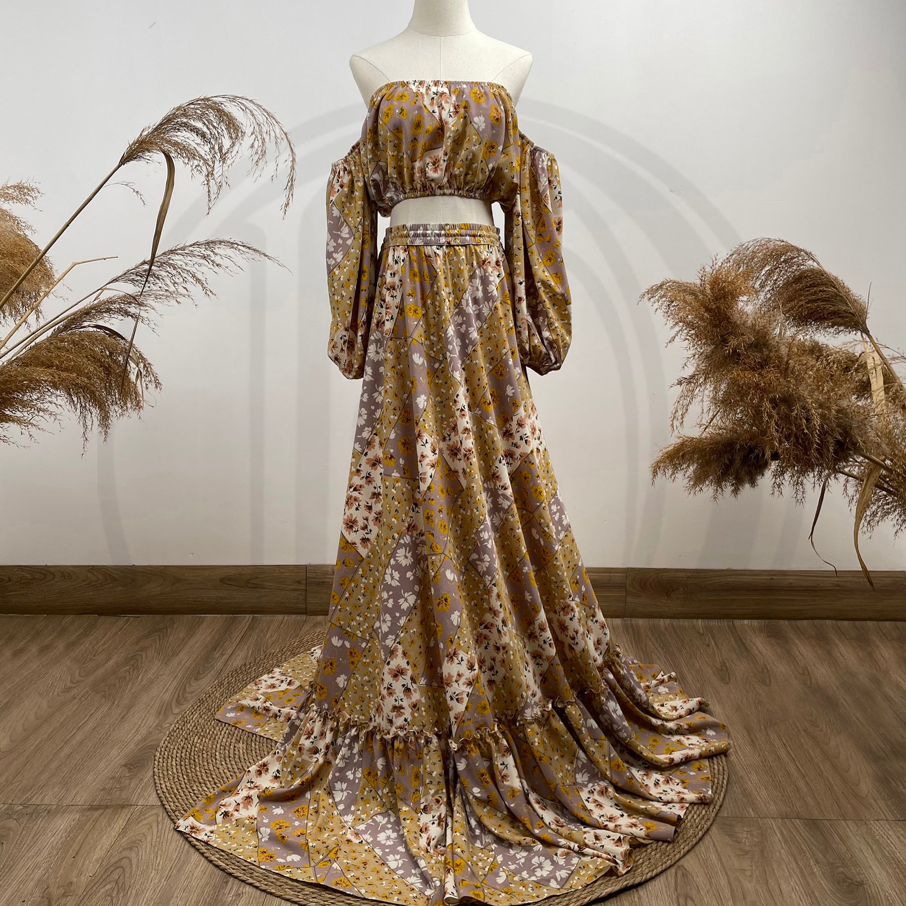 Product name:  Floral Mommy Gown with Matched Little Gilrs 3-6years Old Dress Set Boho Dress Pregnancy Photography Dresses Bohemia Maxi Gown Photo Shoot Prop