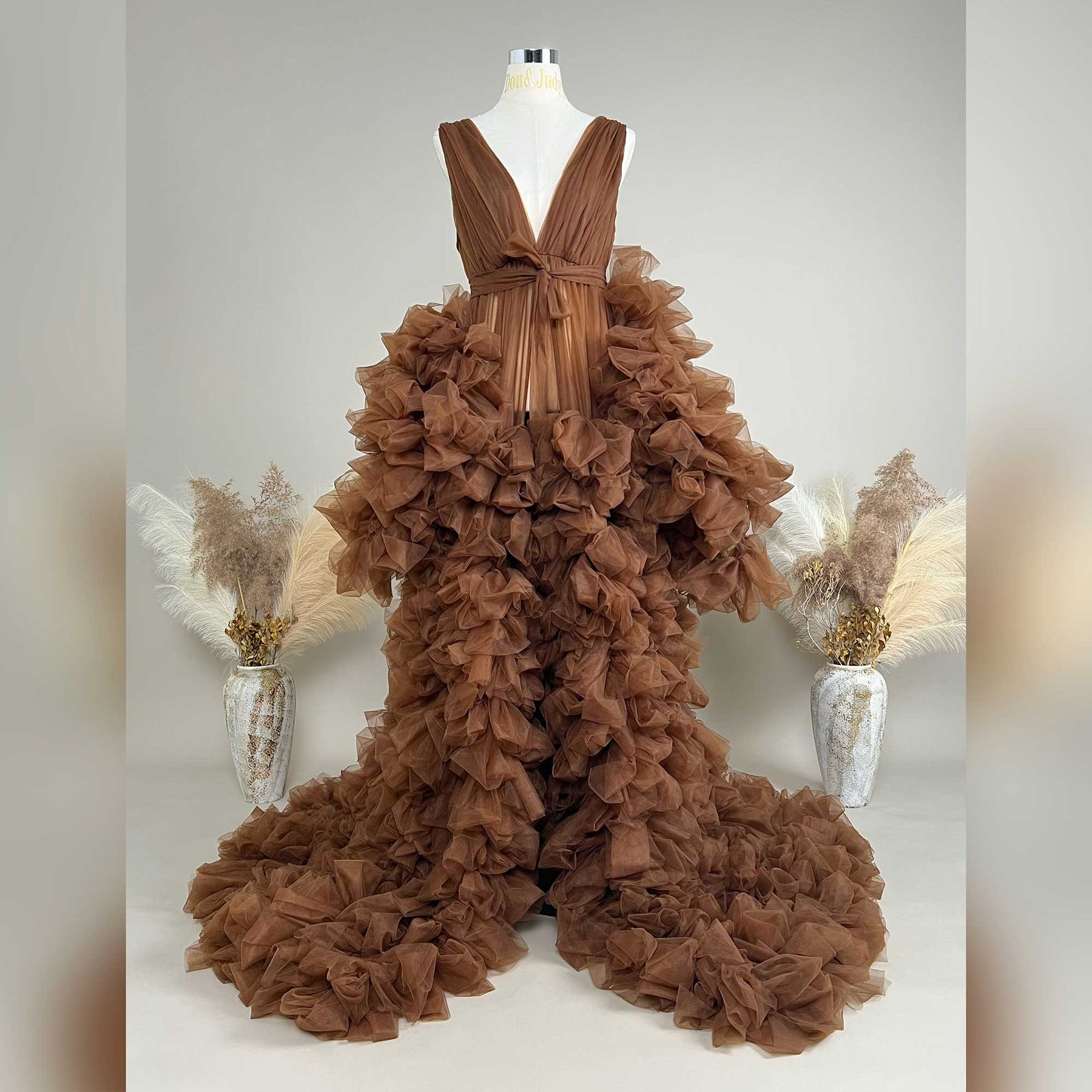 Product name: Elegant Brown Deep V-neck Long Dress – Maternity or Non-maternity Gown Dresses for Baby Shower & Photography Props