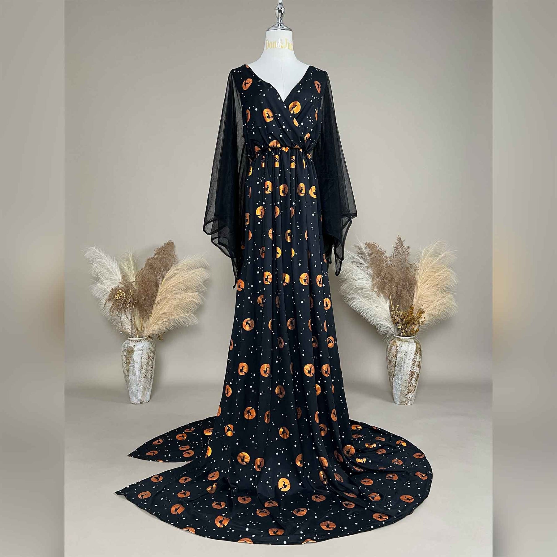 Product name: Halloween Batwing Sleeves Dresses Maternity or Non-maternity Gown Dresses for Photography Props Baby Shower Photo Props