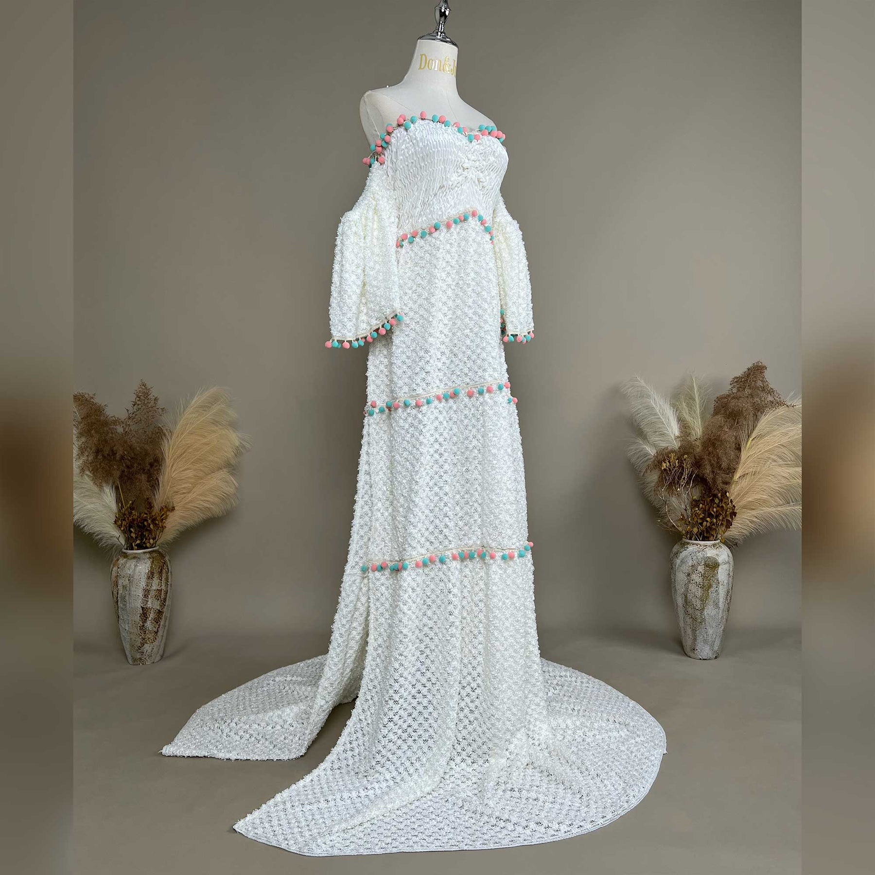 Product name: Elegant White Strapless Maxi Dress – Maternity or Non-maternity Gown Dresses for Baby Shower & Photography Props