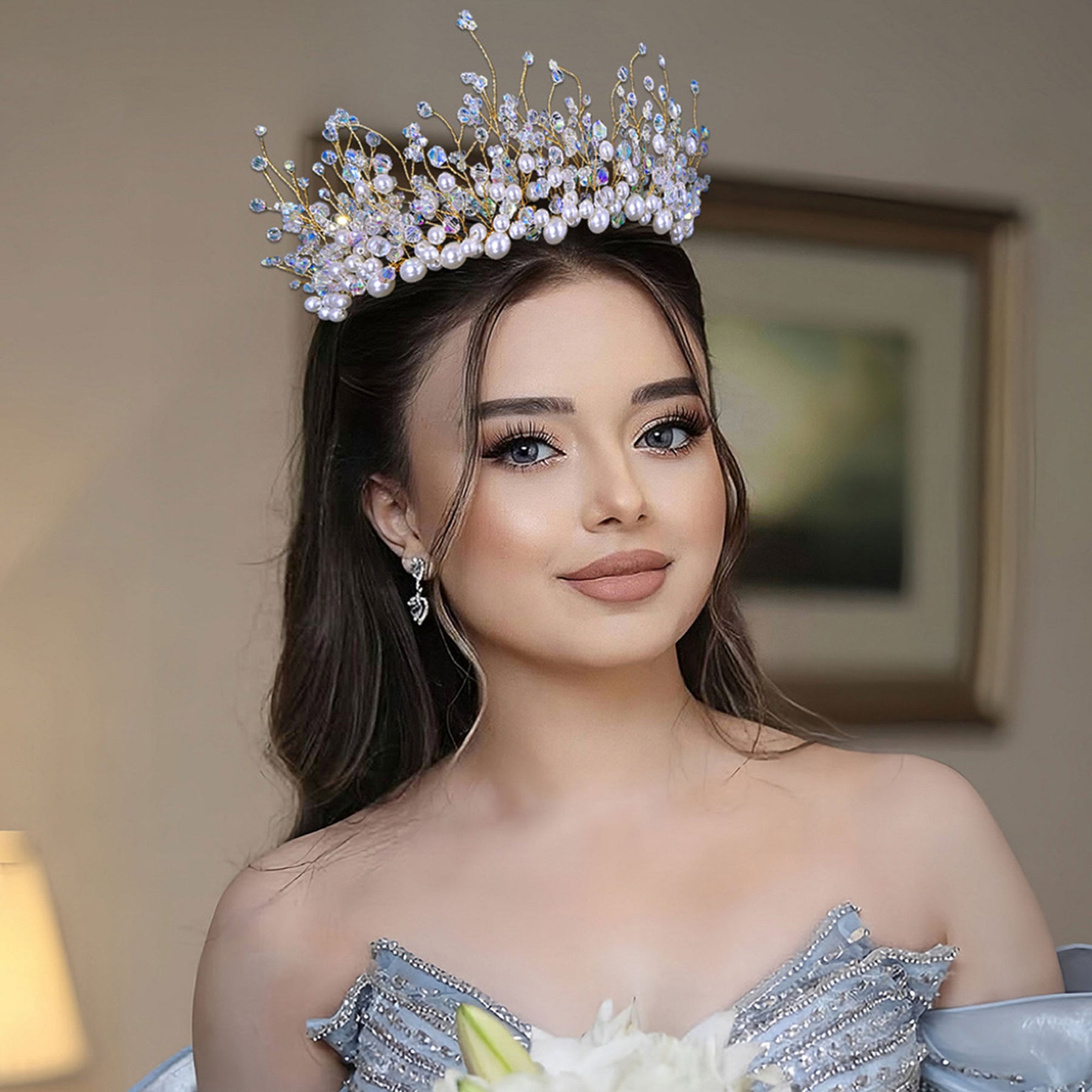 Product name: White Crystal Pearl Crown Headpieces Accessories for Photography Photoshoot Props