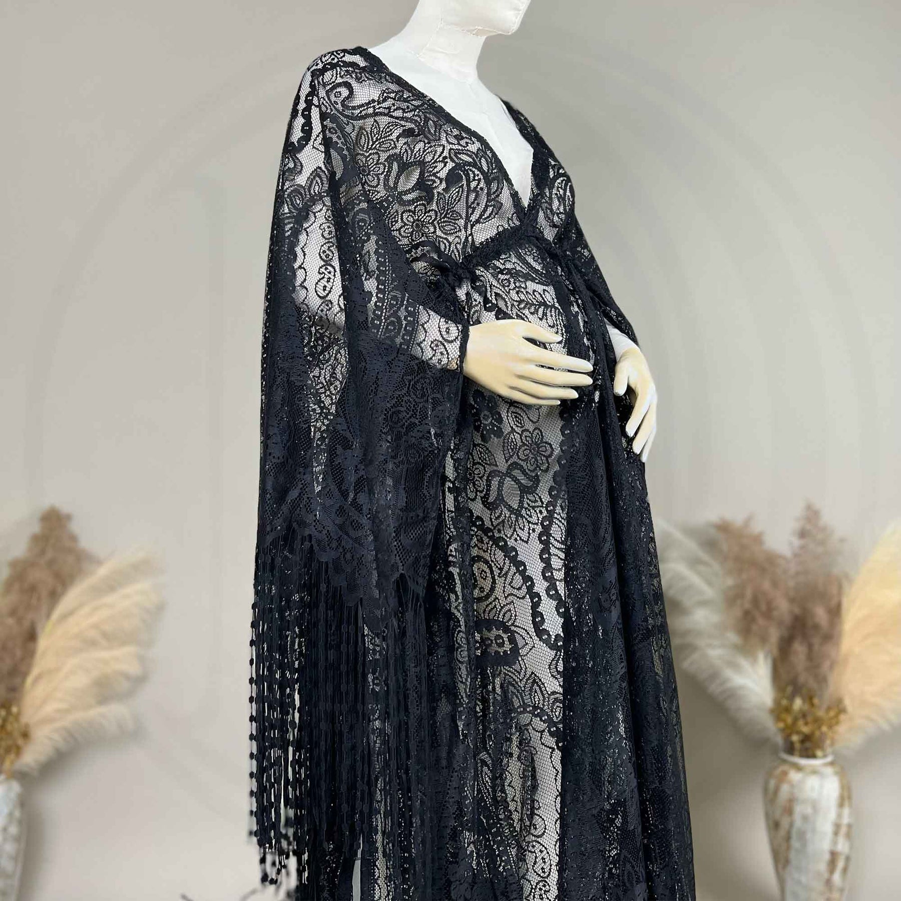 Product name: Photo Shoot Free Size Boho Lace Maternity Gown Evening Party Dresses Pregnant Costume with Long Tassles for Women Photography Props Baby Shower Robe Baby Shower Gift