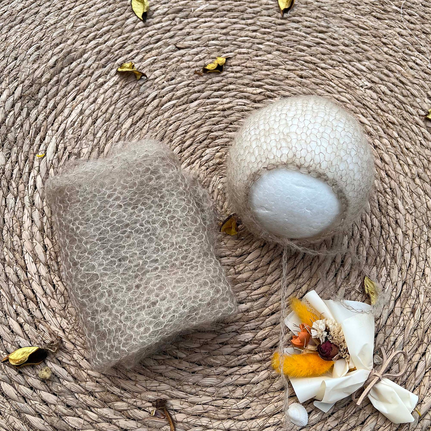 Hand knit Newborn Wraps Set Mohiar Newborn Wrap and Bonnet Set Newborn Photo Props - Don&Judy Newborn&Maternity photography props