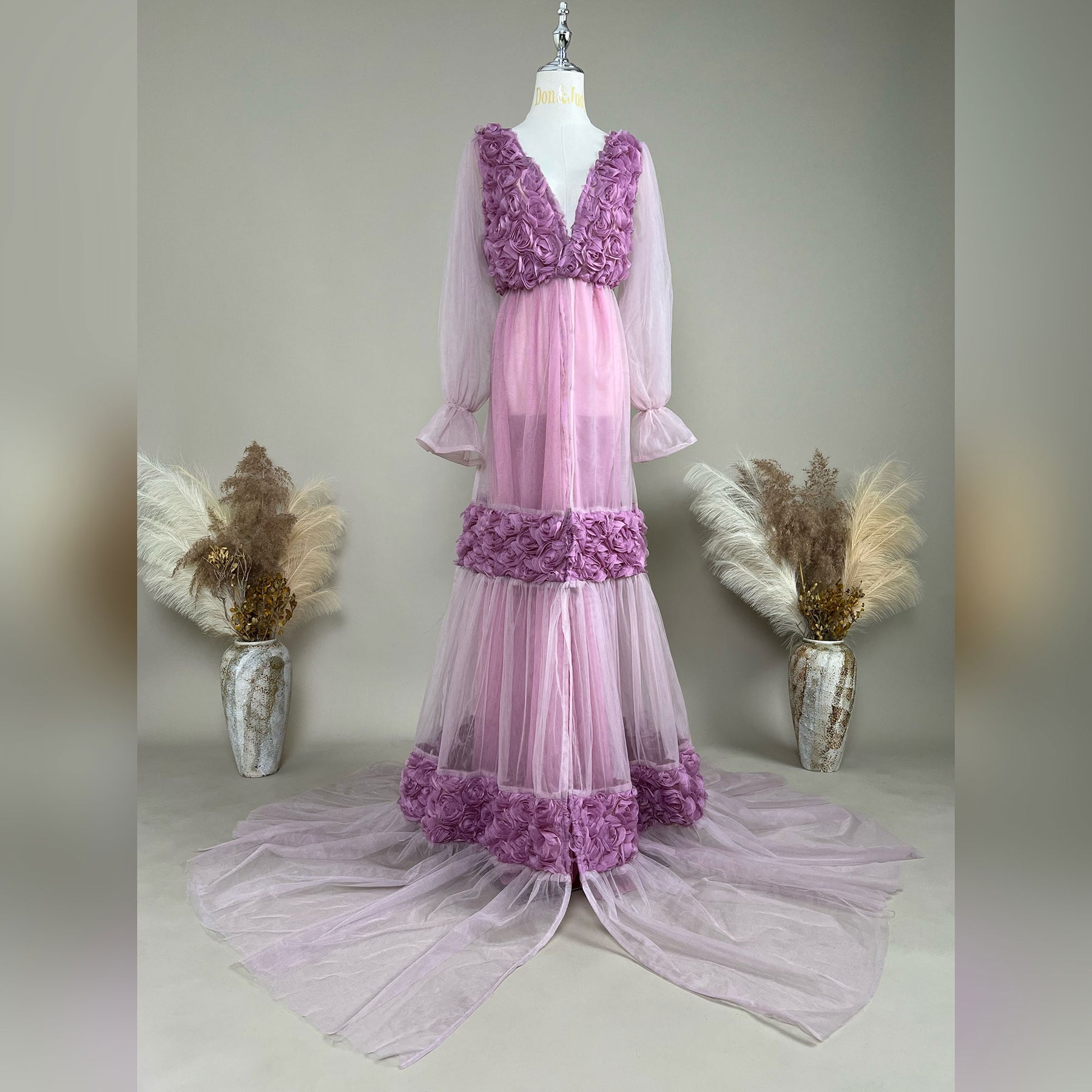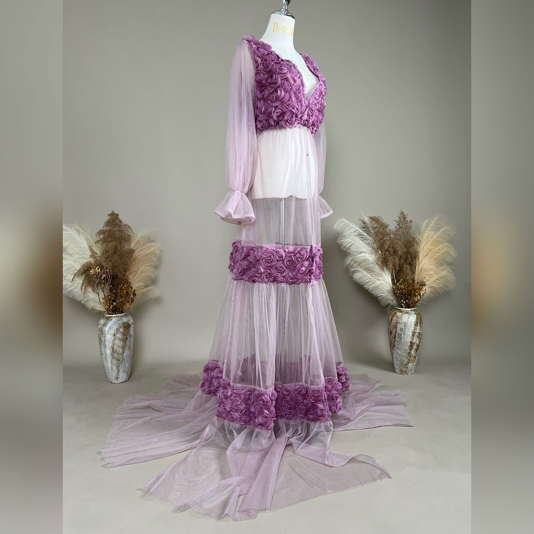 Product name: Purple Floral Tulle Dress – Matching Gowns for Maternity or Non-maternity Photography Props & Baby Shower Photos