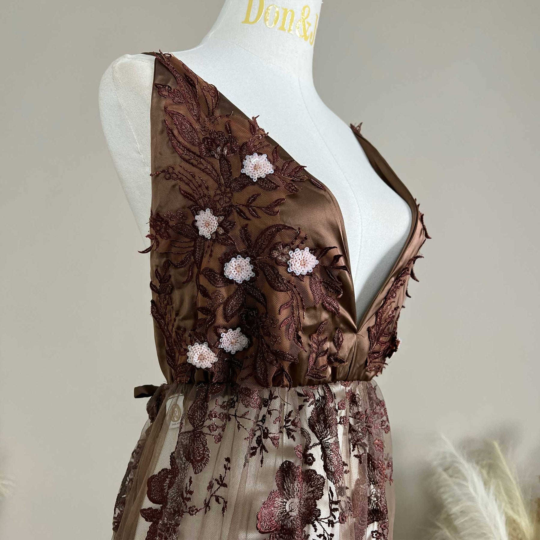 Material : Lace、Faux silk fabric、Mesh sequin fabric