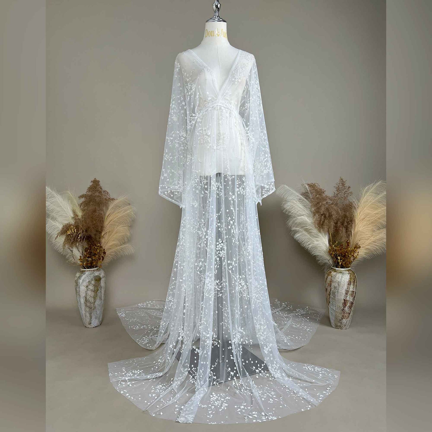 Product name: White Tulle V-neck Gown – Maternity or Non-maternity Dresses for Photography Props & Baby Shower Photoshoot