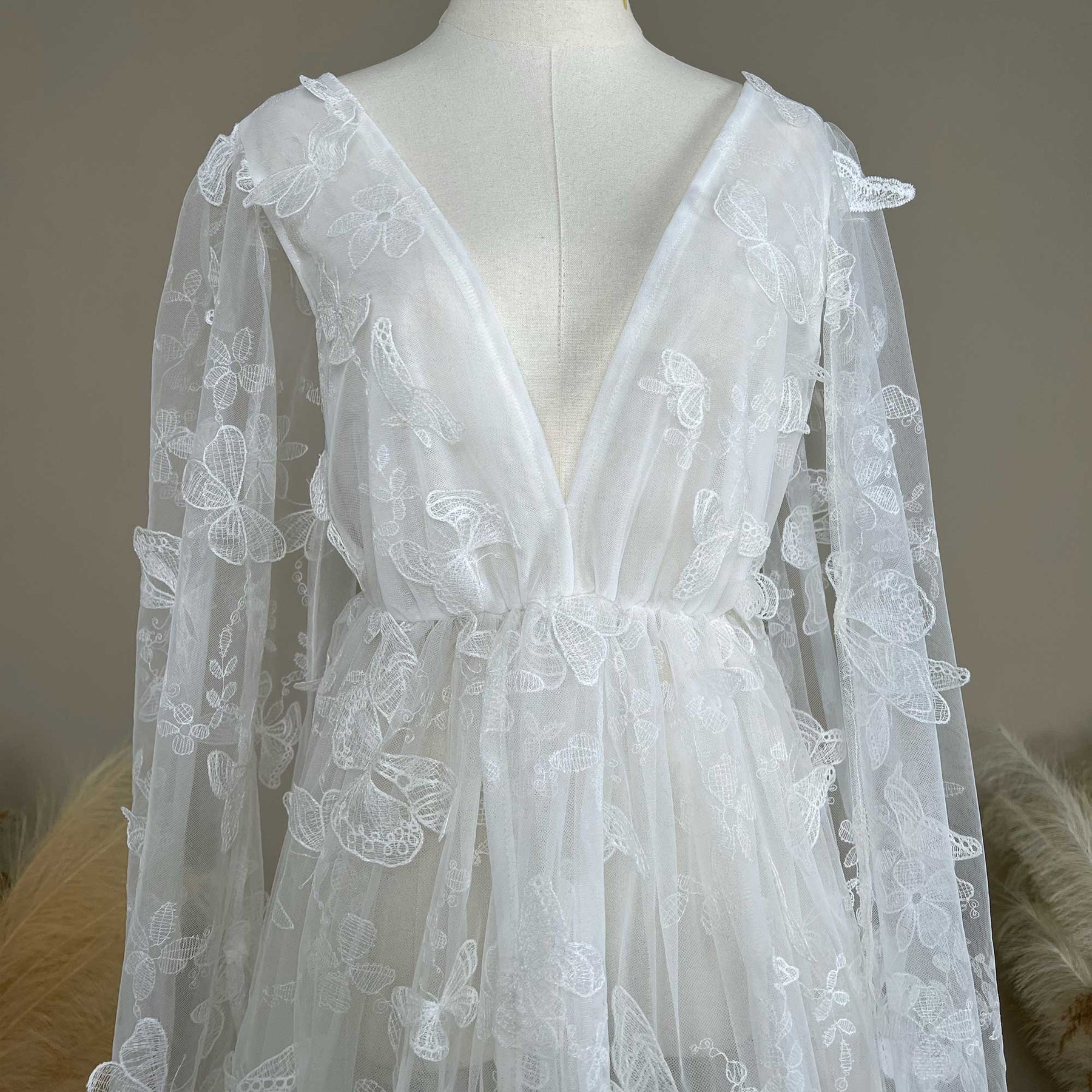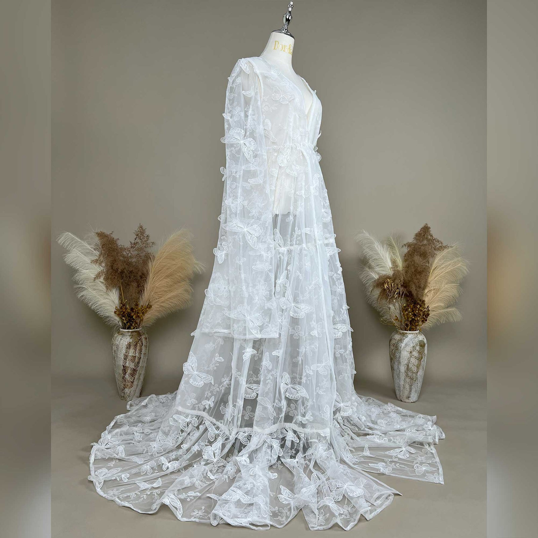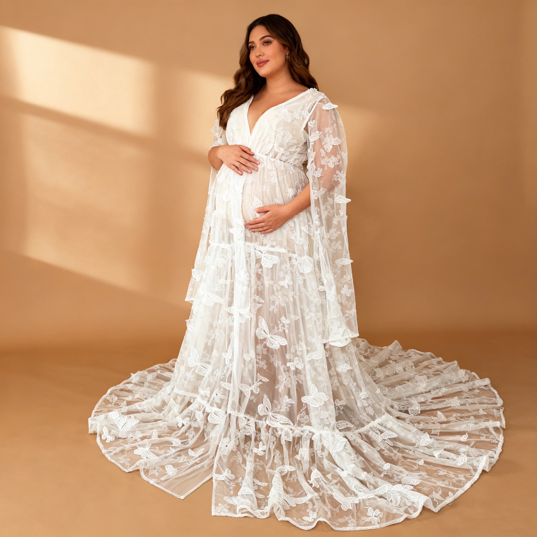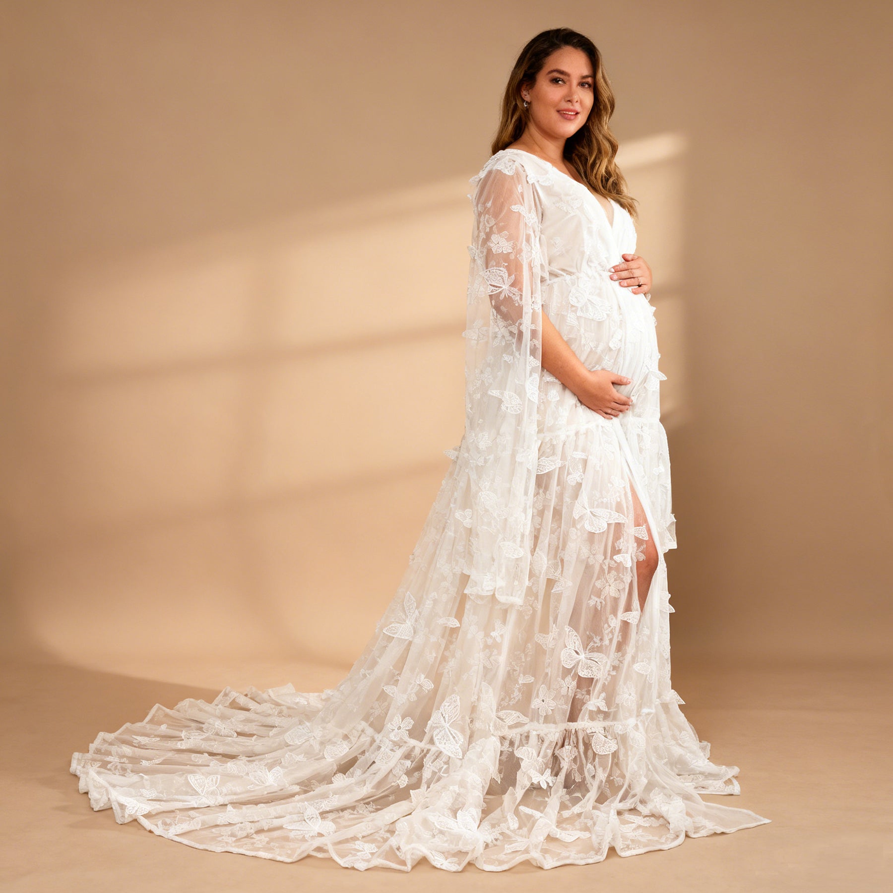 Product name: White Butterfly Extra Long Sleeves Tulle Maternity or Non-maternity Gown for Photoshoot Baby Shower